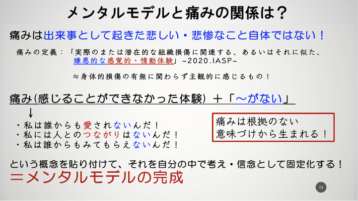 このセミナーでは、セラピストが日々、患者さんのために、クライアントのために…と、ともすると、自己犠牲的に働き、自己研鑽を続け、気づかないうちに自分をないがしろにし、癒されず傷ついたまま、目の前の方の痛みや悩みをひたすら緩和しようとする“無理ゲー”を止めるための気づきやきっかけが得られると思います。なぜ心とは無縁の世界で頑張ってきた中本が、心のことや自己ケアの重要性について語ろうとしているのか?、当日お話しできればと思っております。ピンときた方は是非お気軽にご参加ください!